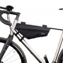 The Restrap Race 4L range cycling frame bag is light, resistant and waterproof, it also has no screws or clamping platforms, it is quick to put on and take off. Featuring X21, a waterproof technical material and a lightweight nylon lining.