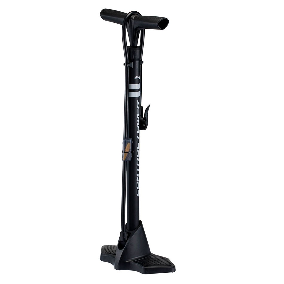 The black GIANT Control Tower 4 model bicycle pump is made of carbon-reinforced plastic material and has a changeable valve for Presta or Schrader.