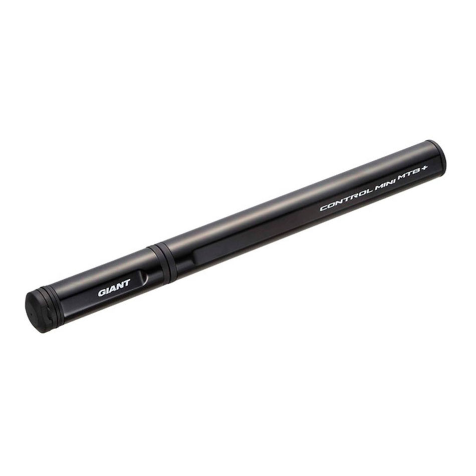 The GIANT Control Mini MTB+ hand pump in black features a compact design perfect for mountain bikes, a CNC machined aluminum body and an extendable hose that inflates up to 140 psi.