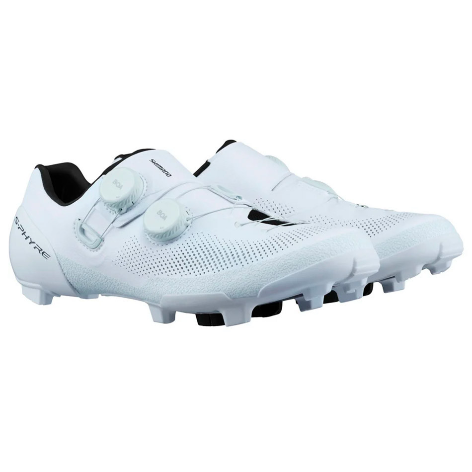 SHIMANO S-Phyre SH-RX910 gravel shoes, made with a synthetic microfiber upper that ensures a comfortable and secure fit. They feature a BOA® Fit system with a dual dial for a precise fit, a durable TPU outsole with a carbon composite midsole, and a stabilizing heel cup for maximum efficiency with every pedal stroke. Designed to offer stability and performance both on and off the bike. A top-of-the-line model with S-Phyre technology, now with a design optimized for gravel riding.