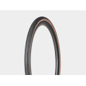The BONTRAGER Girona in 700x42mm in black-brown is a fast-rolling gravel tyre with a low tread pattern for maximum speed on hard-packed and mixed terrain. The RSL GR construction features a super-supple 220TPI casing with bead-to-bead protection, and the dual gravel compound features a firmer center section for straight-line speed and medium side knobs for optimal cornering grip.