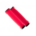The Red Race Face Love Handle Rider Grips feature a durable silicone compound, a directional contoured palm area design with moisture wicking channels, and a diamond patterned bottom for improved finger control and mitigation. unwanted slips.