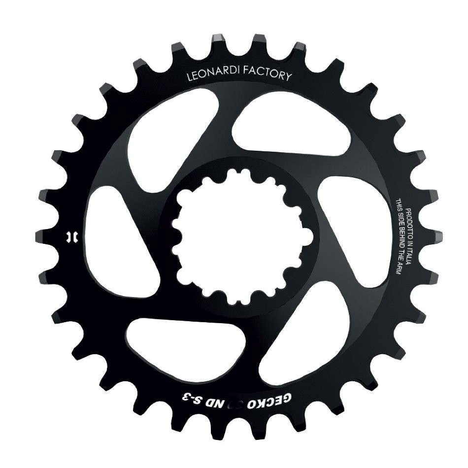 The LEONARDI Gecko Boost Crank Eagle 32T cycling chainring allows you an optimal setup for single speed drivetrains or 1x10 / 11 and 1x12 (SRAM Eagle), plus it bolts directly to the crank arm and therefore saves a lot of weight compared to conventional spider/chainring combinations and are also significantly more resistant to torsion.