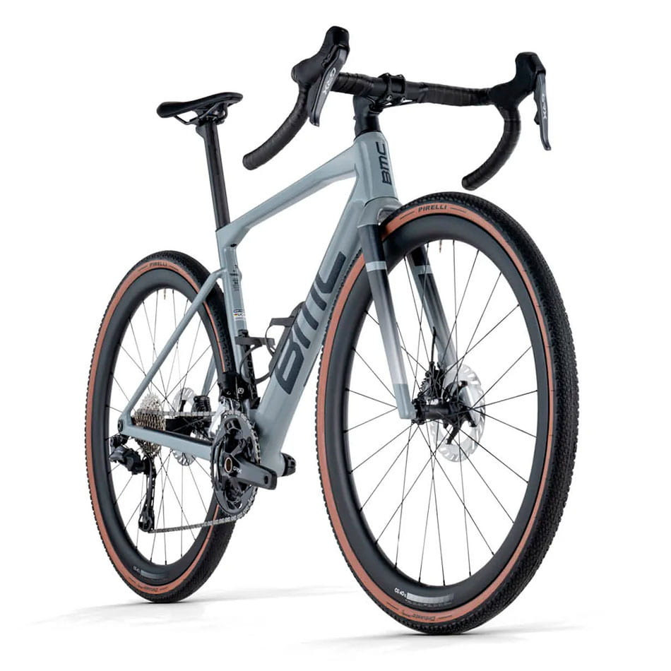 The BMC Kaius 01 THREE is a high-performance gravel bike, designed to deliver speed, precision, and efficiency on any terrain. Its premium carbon frame and fork feature ICS Stealth Cable Routing technology, ensuring optimized aerodynamics and full cable integration. Equipped with a Shimano GRX Di2 2x12 electronic drivetrain, 48-31T chainrings, and 11-34T cassette, it provides precise shifting and versatile performance for all types of rides. It features a 4iiii Precision Gen3+ power meter, ideal for detailed effort monitoring. Shimano GRX disc brakes with 160mm rotors ensure powerful and reliable braking in any condition. It rides on CG 40 SL Tubeless Ready carbon wheels, paired with 40mm Pirelli Cinturato Gravel H tires, optimizing traction and speed on gravel and asphalt roads. A bike designed for competitive gravel riding and the most demanding adventures. Don't miss out on yours and conquer any route!
