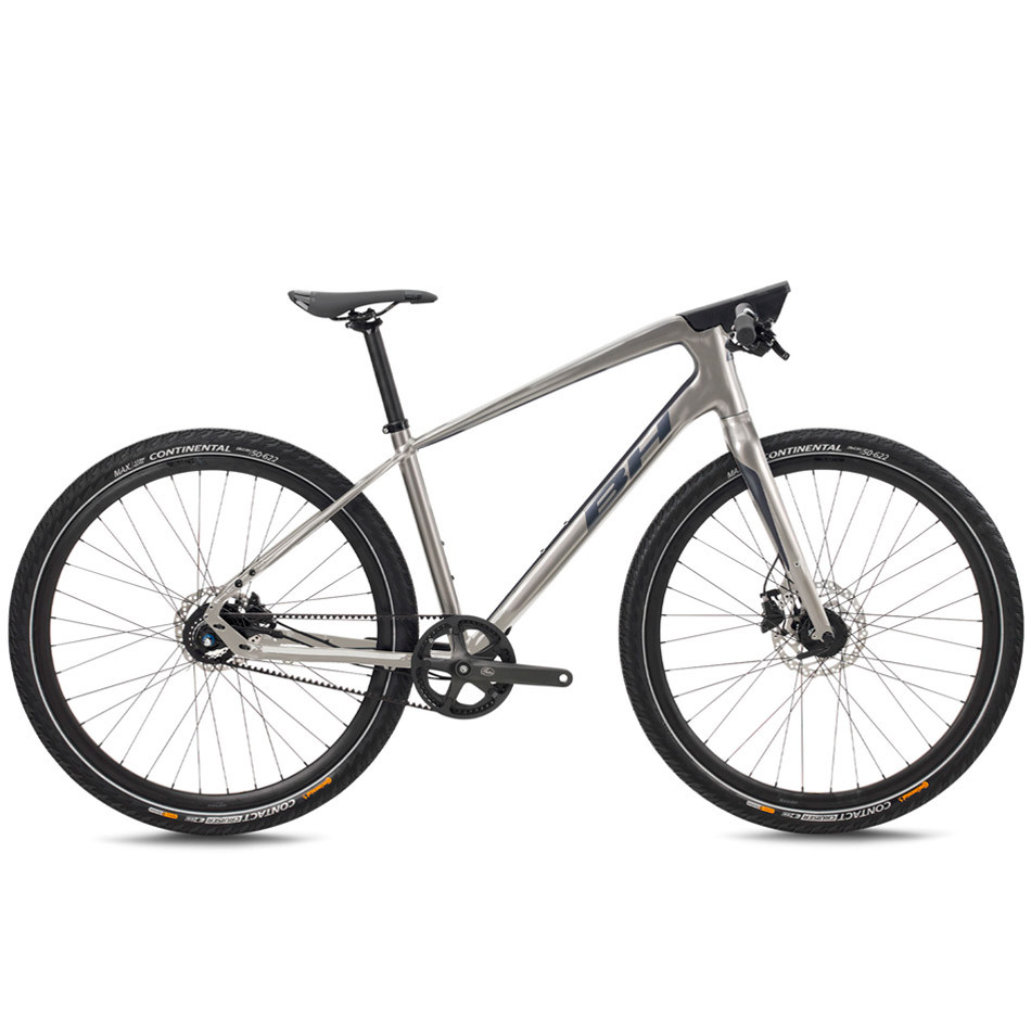 The BH Silvertip Pro 2026 is an urban bike with an aluminum frame and fork, designed for stylish and comfortable city commutes. It features a belt drivetrain with an Alfine internal shifter and Enviolo system, 50-tooth crankset, and Nexus shifters. Shimano MT200 hydraulic brakes, wheels with Shimano Dynamo hubs, and Continental Contact Cruiser tires. Aluminum components, a Lite seatpost, and a Kappa saddle complete this practical and elegant package. Ideal for maintenance-free and noise-free daily commutes thanks to its belt drivetrain.