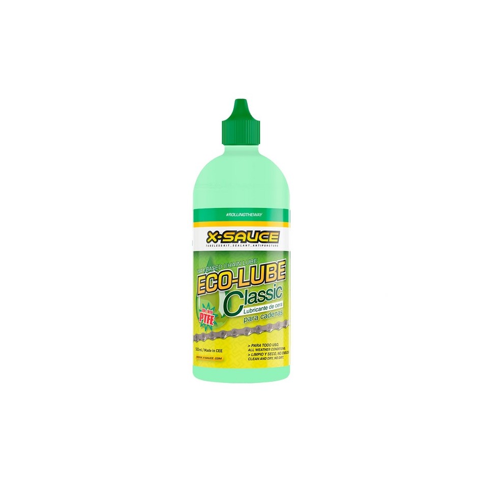 Compra el lubricante biodegradable seco Ecolube X-Sauce de 500ml para cadenas de bicicletas desarrollado a base de cera y aditivos antifricción.