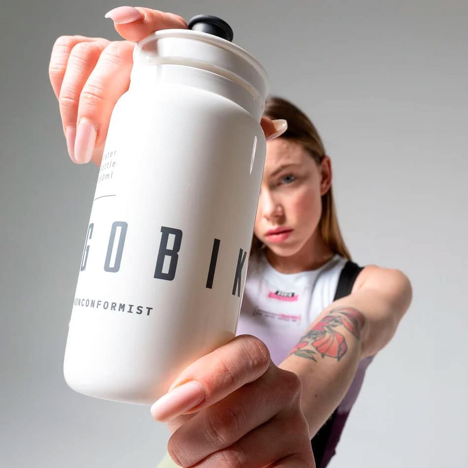 El bidón para ciclismo GOBIK de la gama Fly Howlite 550 cc tiene un peso ligero de solo 54 grs y cuenta con un tapón con boquilla plana que posibilita su uso fácil sobre la bicicleta.