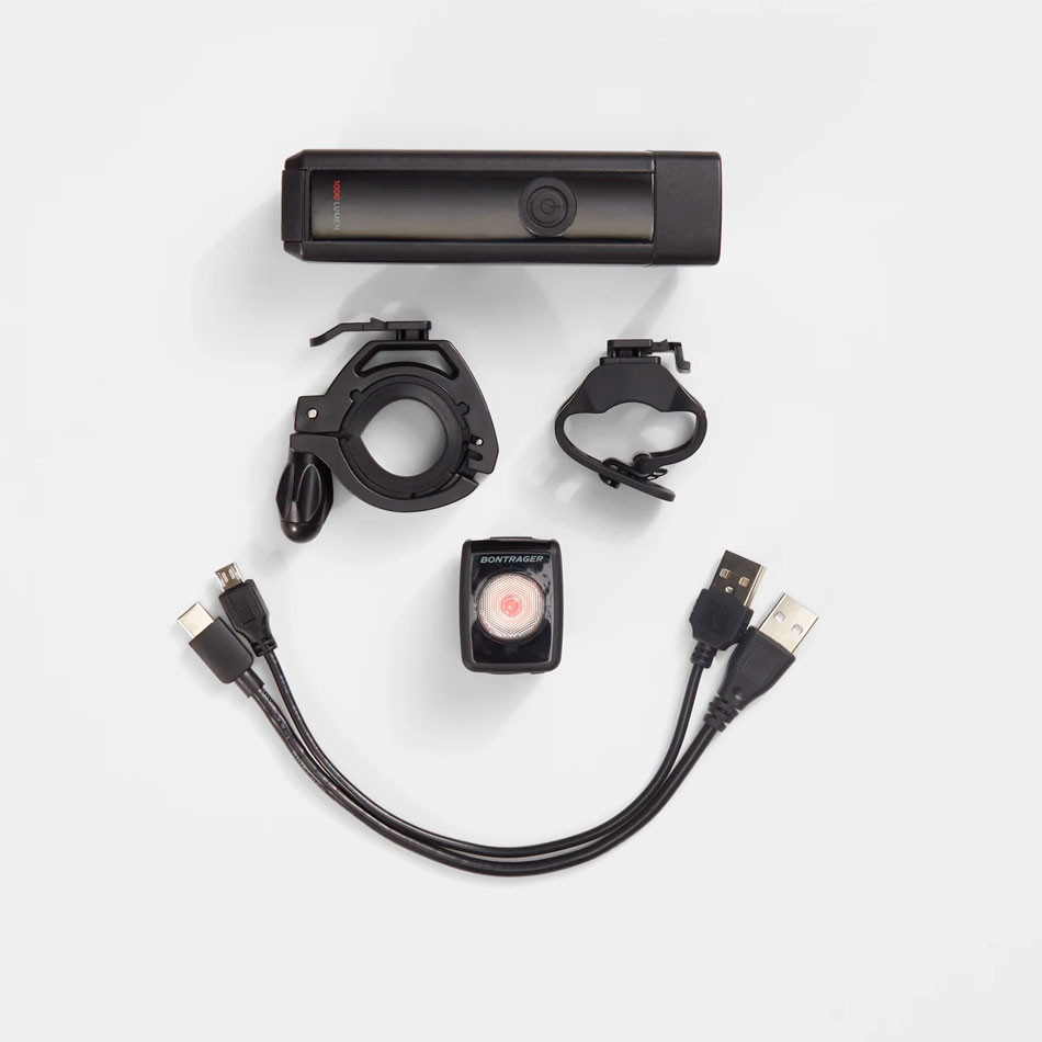 El juego de luces TREK Commuter Pro RT y Flare RT combina la visibilidad de la luz de circulación diurna con la potencia de la luz delantera Commuter Pro RT. El Kindbeam mantiene la luz en el camino sin incidir en los ojos de los ciclistas que se aproximan en sentido contrario, dando como resultado una potente luz que no deslumbra a los ciclistas con los que te encuentres. Dispone de un indicador de autonomía visible, conexión inalámbrica con la luz trasera y el Charge-back que te permite utilizar la luz como un reservorio de batería para cargar dispositivos..
