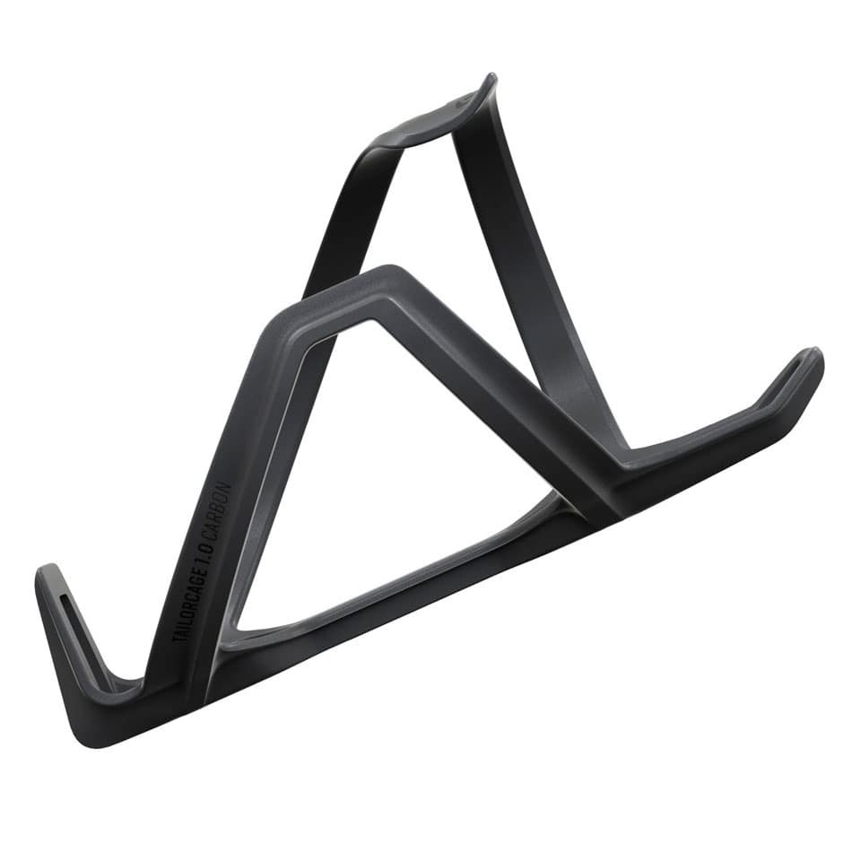 Le porte-bidon SYNCROS Tailor Cage 1.0 en noir mat a une construction en fibre de carbone injectée et est équipé pour être placé sur le côté du cadre du vélo tout en étant très léger et résistant.