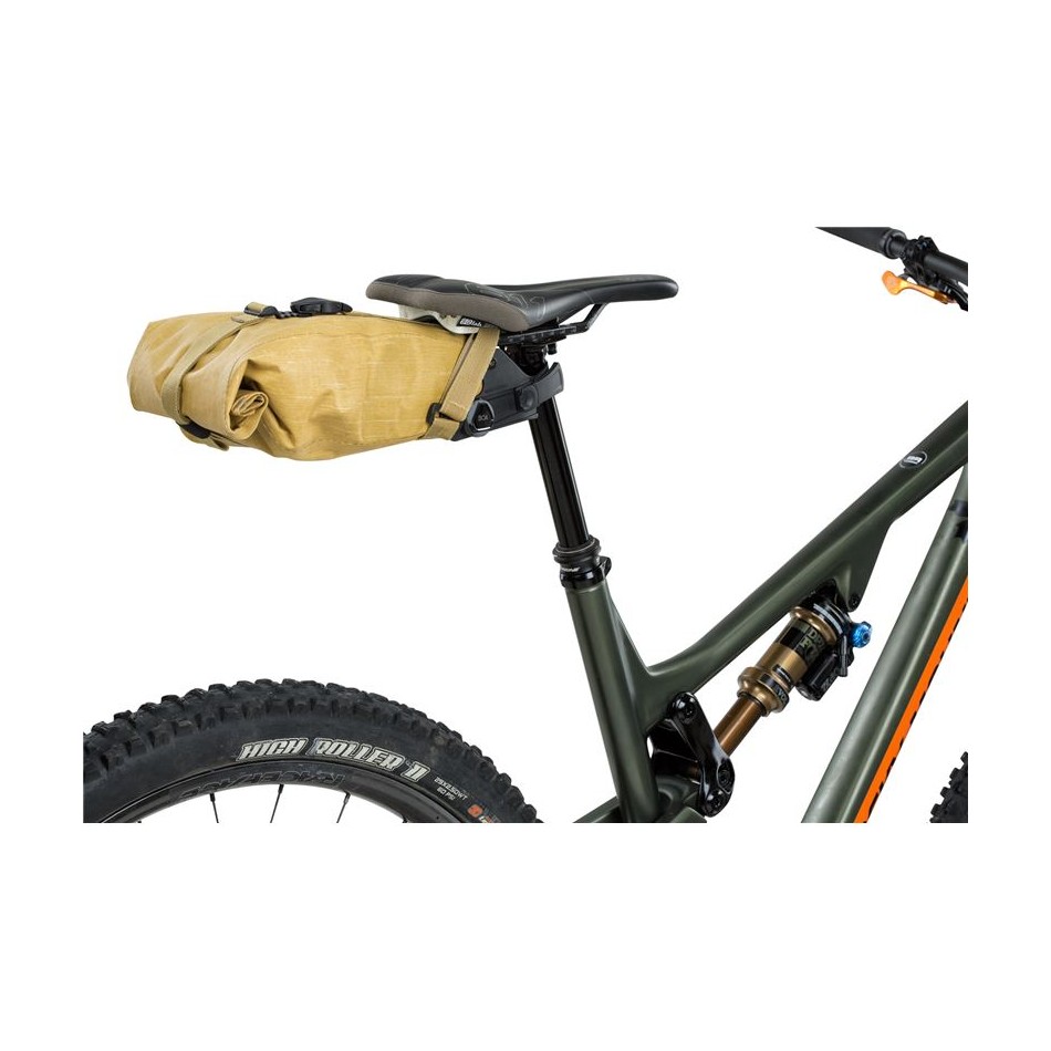 La sacoche de selle de la gamme EVOC Boa L 3L de couleur terre se fixe facilement et en toute sécurité à la tige de selle à l'aide du révolutionnaire BOA FIT SYSTEM. Le système permet également un retrait facile. Une fermeture à enroulement vous permet d'ajuster facilement le volume d'outils et de pièces de rechange pour votre excursion d'une journée.