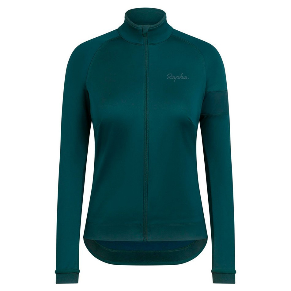La veste de cyclisme pour femme RAPHA Core Winter est dotée d'un devant laminé multicouche résistant à l'eau et d'un dos respirant pour évacuer la chaleur, ainsi que de détails réfléchissants pour plus de sécurité pendant l'entraînement.
