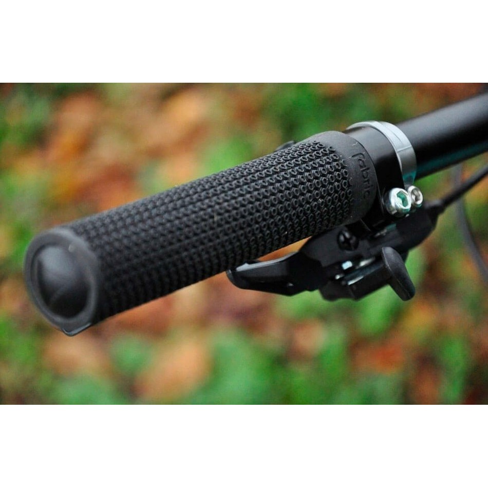 Les poignées de cyclisme Fabric Grip Micro-Hex en noir ont un motif micro-hexagonal pour une meilleure adhérence et une pince cachée pour la plus grande zone de soutien.