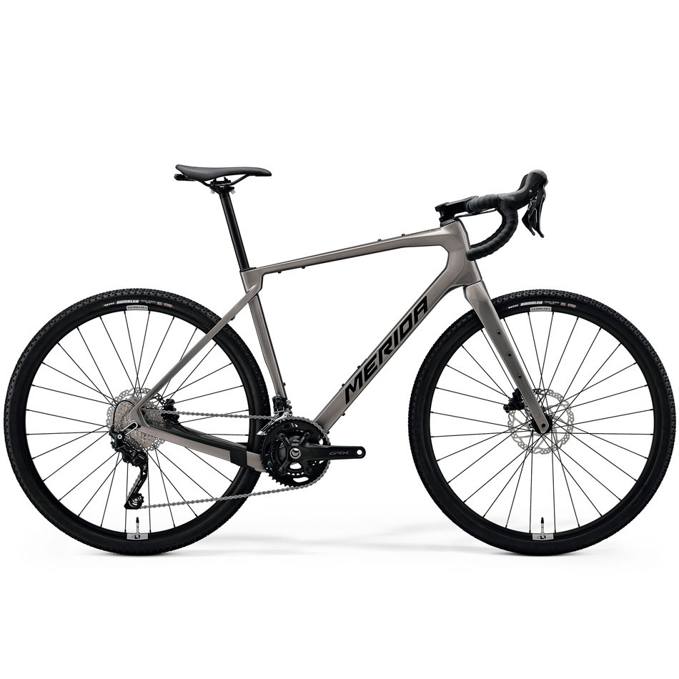 Le vélo gravel MERIDA Silex 4000 2026 est doté d'un cadre et d'une fourche en carbone Silex CF2 II, compatibles avec des pneus jusqu'à 700x47c. Il est équipé d'une transmission Shimano GRX400 à 10 vitesses, d'un pédalier GRX600 et de freins à disque Shimano. Les roues Reynolds Duroc G30 sont chaussées de pneus Maxxis Rambler de 45c. Idéal pour les aventures hors route et les longues sorties, il allie légèreté et confort.