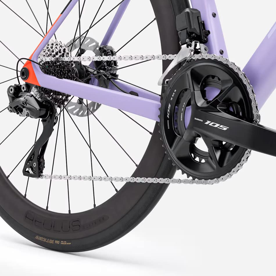 PÉDALIERS ET PLATEAU Taille XS, S : Shimano 105 R7100, 50/34, 165 mm ; Taille M, ML : Shimano 105 R7100, 50/34, 170 mm ; Taille L, XL : Shimano 105 R7100, 50/34, 172,5 mm