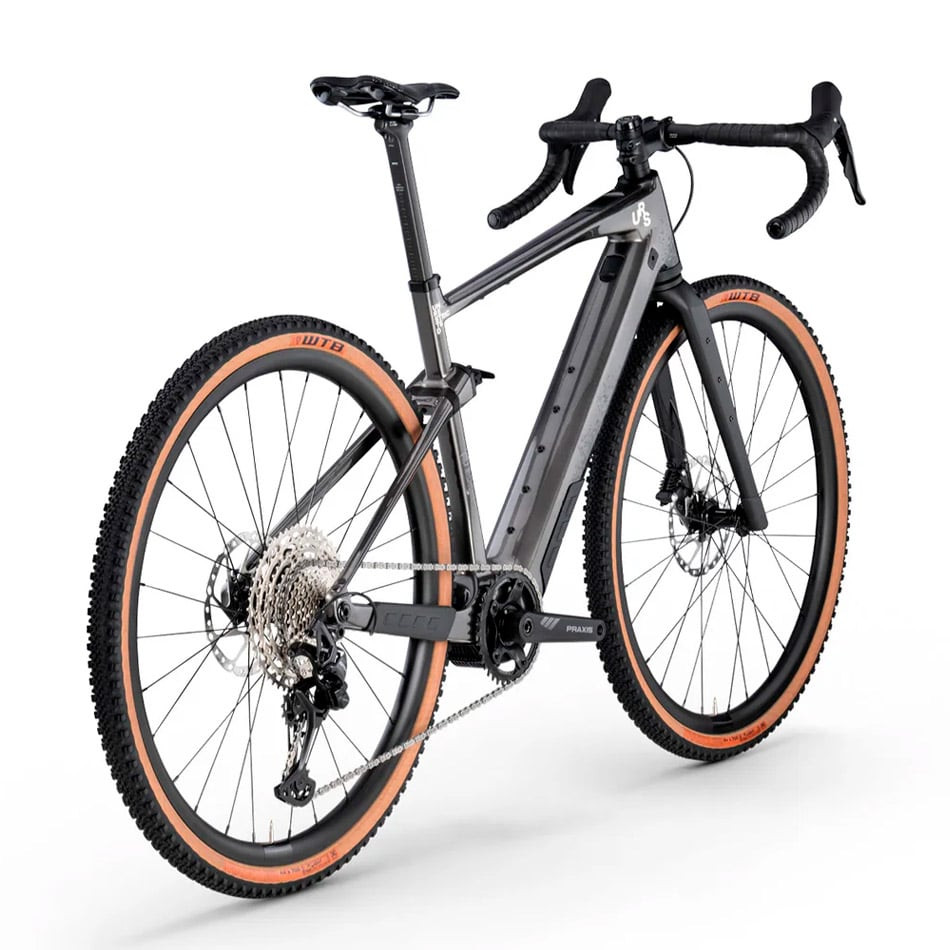 URS AMP Premium Carbon avec technologie Micro Travel, géométrie Gravel+, batterie intégrée, acheminement interne des câbles, supports de garde-boue et de porte-bagages, disque à montage plat, axe traversant 12 x 142 mm, pattes de fixation UDH