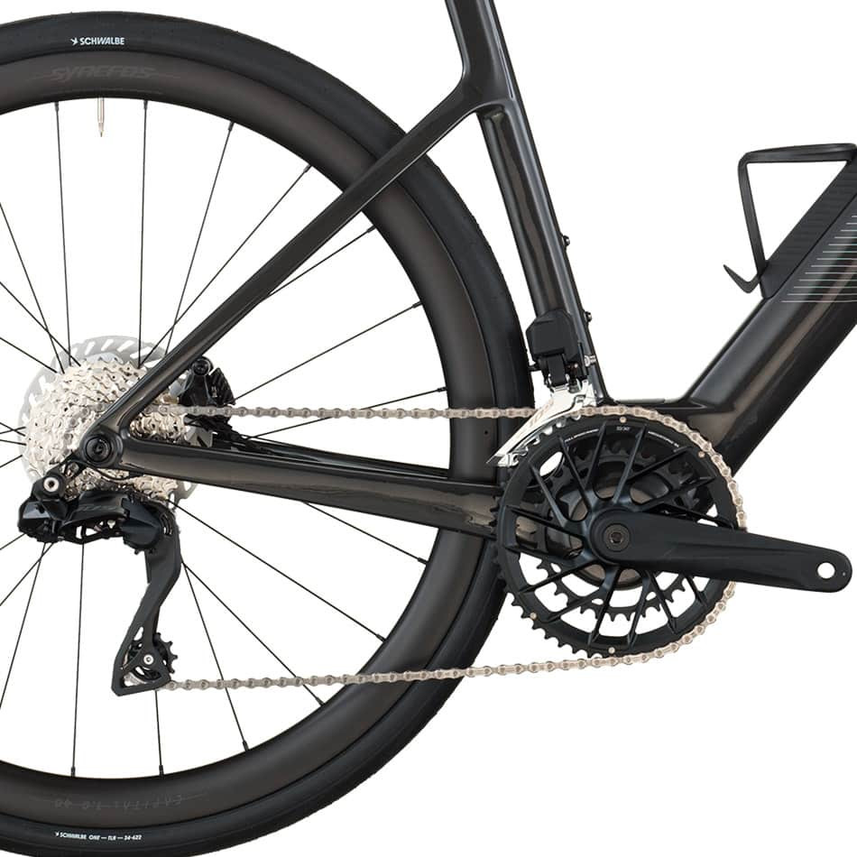 Cadre Fastlane Road Disc HMX, géométrie Endurance, système d'intégration de câbles Syncros, coupleur HPR40, interface UDH, compatible avec prolongateur d'autonomie