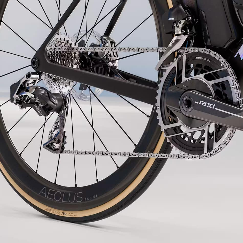 La gamma TREK Madone SLR 9 AXS Gen 8 del 2026 è progettata per dominare la strada, coniugando leggerezza e velocità aerodinamica. Il telaio è realizzato in carbonio OCLV Serie 900 di altissima qualità, che non solo è incredibilmente leggero, ma offre anche forme aerodinamiche per affrontare discese e rettilinei impegnativi. La tecnologia IsoFlow consente alla Madone di non sacrificare il comfort in nome della velocità. È inoltre dotata di trasmissione wireless SRAM RED AXS a 12 velocità, ruote in carbonio Bontrager Aeolus RSL 51, cockpit in carbonio e borracce e portaborracce RSL Aero per ridurre al minimo la resistenza aerodinamica.