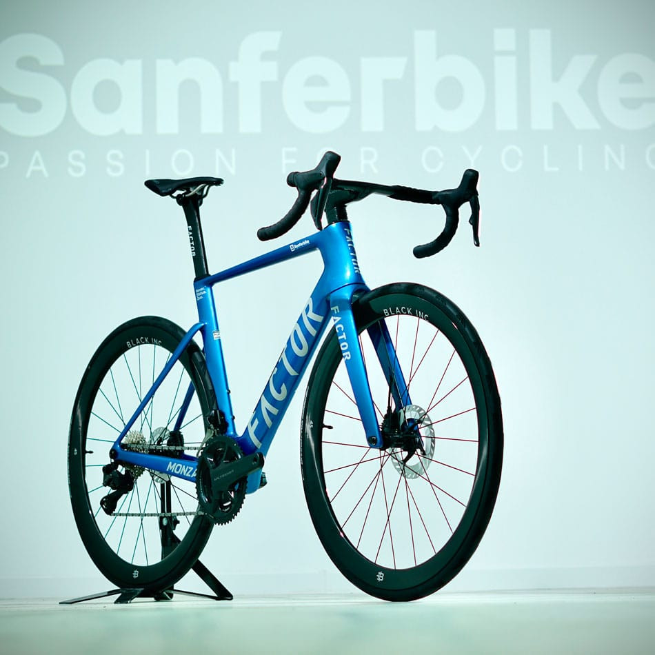 La FACTOR Monza è una bici da corsa ad alte prestazioni con telaio in carbonio Toray® e forcella MONZA Wide Stance, progettata per aerodinamica, rigidità e comfort sulle lunghe distanze. Dotata di gruppo elettronico Shimano Ultegra Di2 a 12 velocità, freni idraulici, ruote Black Inc 45 e pneumatici Continental GP5000 da 28 mm. Include manubrio integrato Black Inc e reggisella regolabile, progettati per la massima efficienza e con un passaggio ruota fino a 34 mm. Una bici precisa, leggera e veloce, ideale per ciclisti esigenti che apprezzano il design e la tecnologia da corsa. Prestazioni premium in ogni dettaglio. Acquistala e conquista l'asfalto!