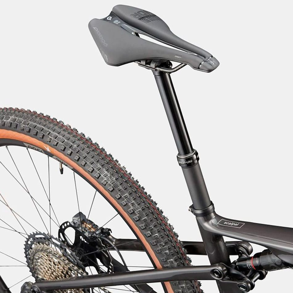 TELAIO Scalpel, struttura in carbonio leggera, escursione 120 mm, sospensione e geometria Proportional Response, fodero orizzontale FlexPivot, passaggio cavi interno completo, BSA 73 mm, tubo sterzo da 1,5" con riduttore superiore da 1-1/8"/guidacavo interno, perno passante 148x12 mm, linea catena 55 mm, UDH, disco post-mount 160 mm nativo