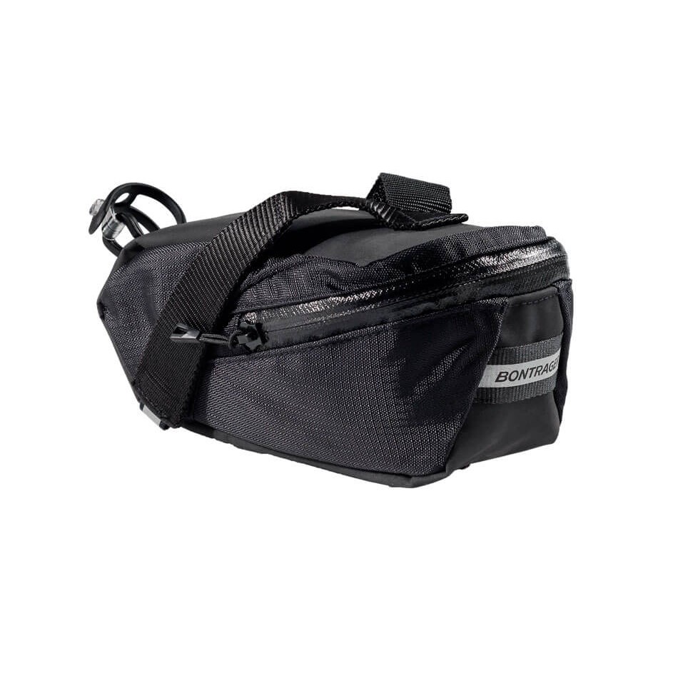 A bolsa de selim da linha Bontrager Elite em preto tamanho L instala-se com rapidez e segurança em todos os tipos de bicicletas.