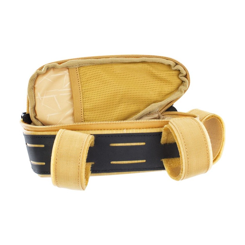 A bolsa para quadro de ciclismo EVOC Multi Frame S 0,7L na cor terra é muito versátil, para armazenamento adicional em sua bicicleta com várias opções de fixação.