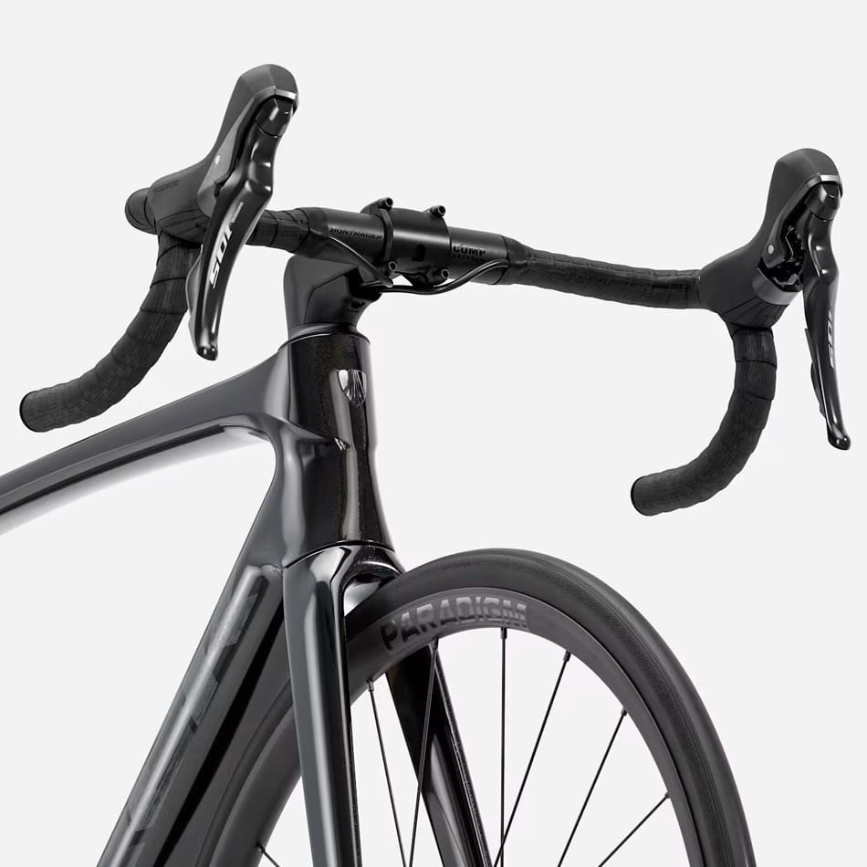 QUADRO Série 500 OCLV Carbon, formatos de tubo Full System Foil, tubo de selim IsoFlow, sistema de caixa de direção RCS, roteamento de cabo eletrônico ou mecânico, suporte de corrente aerodinâmico removível, movimento central T47, disco de montagem plana, UDH, eixo passante de 142x12 mm