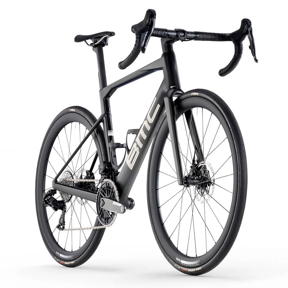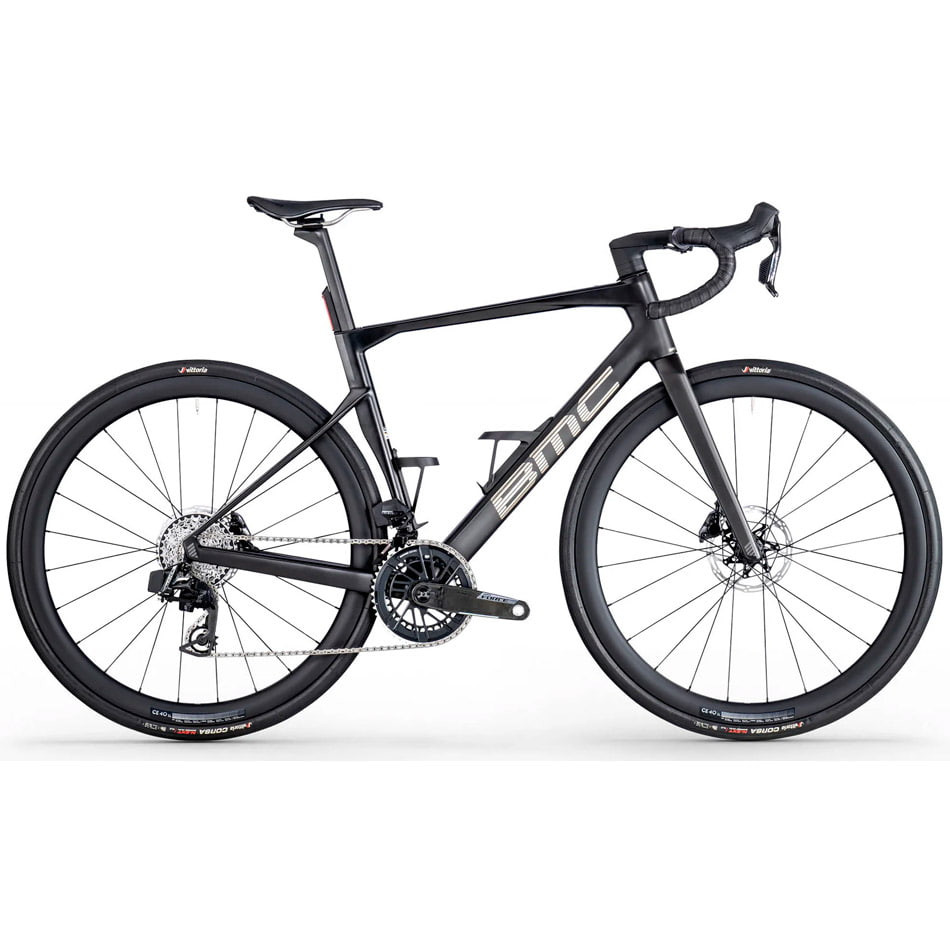 Quadro de carbono premium BMC Roadmachine 01 / Conceito de conformidade ajustado Endurance / Roteamento de cabos Stealth com tecnologia ICS / Armazenamento integrado no tubo inferior / Suporte Stealth / Eixo passante de 12x142 mm