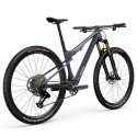 QUADRO Carbono T800 e T1100, curso de 110 mm, plataforma de suspensão UNNO XC, geometria agressiva voltada para corridas, movimento central rosqueado, compatível com canote de selim de 31,6 mm, eixo traseiro compatível com UDH de 12x148 mm, roteamento interno de cabos, para-lama traseiro, braçadeira de selim integrada e suporte de corrente.