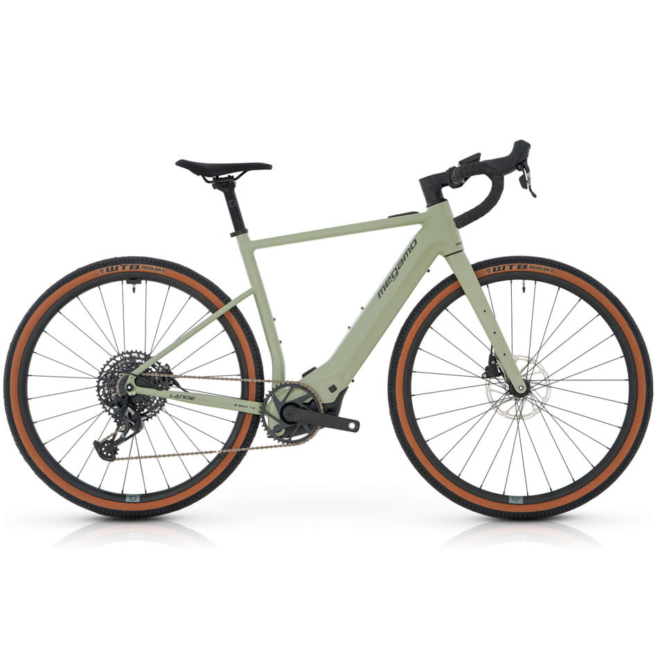 A bicicleta elétrica MEGAMO Lande 2025, uma bicicleta e-gravel com quadro de alumínio, garfo de carbono e bateria totalmente integrada, projetada para explorar além do asfalto. Construída com motor Bosch Performance Line SX, bateria CompactTube de 400 Wh, grupo SRAM Apex Eagle de 12 velocidades, freios hidráulicos SRAM e rodas Megamo Gravel tubeless com pneus WTB Riddler 700x45c. Uma bicicleta elétrica de gravel leve, rápida e versátil, ideal para combinar aventura, desempenho e assistência em qualquer terreno. Perfeita para quem busca expandir seus horizontes sem abrir mão do espírito gravel. Desfrute da liberdade com a nova MEGAMO Lande!