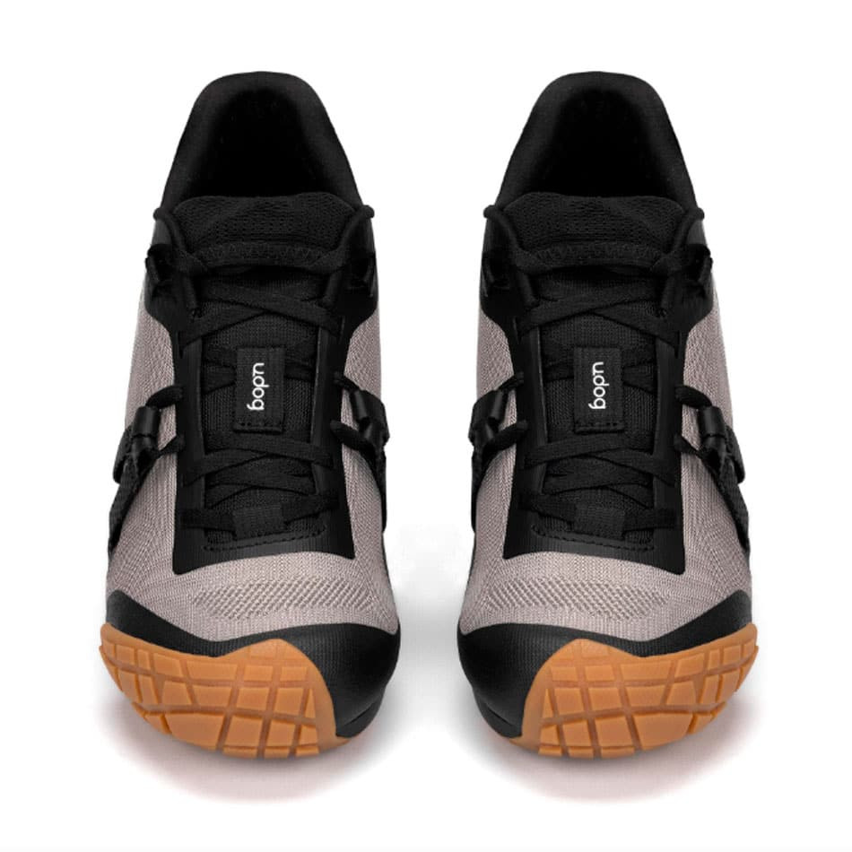 • Solado construído a partir de um núcleo composto de carbono com acabamento em borracha que termina no dedo do pé e no calcanhar para maior proteção off-road