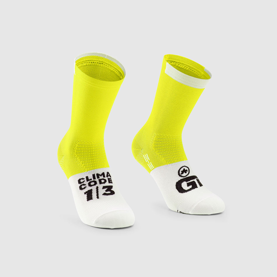 As meias de ciclismo ASSOS GT C2 têm as mesmas características do modelo anterior de meia GT, mas com um cano mais alto e um design renovado.