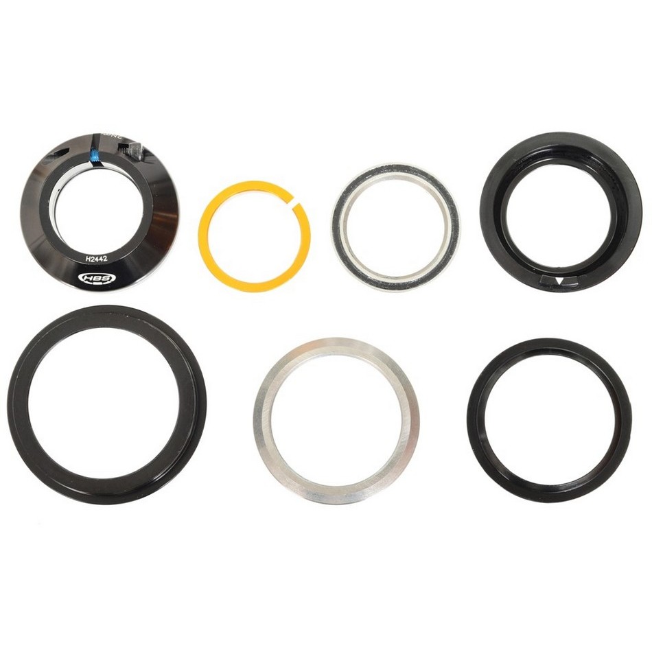 • O kit inclui: espaçador cônico de trava superior, placa de trava superior, calço de rolamento superior, rolamento superior, capa ZS44 com batente, capa inferior ZS56, rolamento inferior e pista de coroa de 40 mm