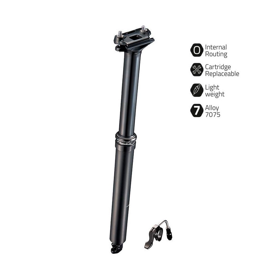 Espigão telescópico para bicicleta TRANZX da gama P276X 30,9x459 mm e curso de 150 mm tem cabos internos e é feito de alumínio 7075 para que além de ser leve também seja muito leve.