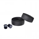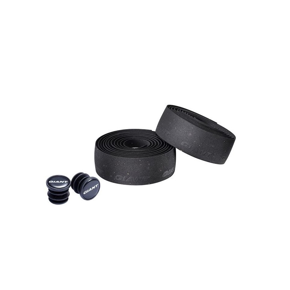 A fita de guiador de bicicleta modelo GIANT Cork na cor preta é confeccionada com cortiça natural para absorver o suor das mãos do ciclista e também é resistente ao calor causado pelo atrito.